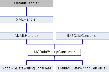 The MSDataWritingConsumer is able to write spectra and chromatograms to disk on the fly (as soon as they are consumed). This class is abstract and allows the derived class to define how spectra and chromatograms are processed before being written to disk.
