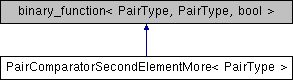 Inheritance diagram for PairComparatorSecondElementMore< PairType >: